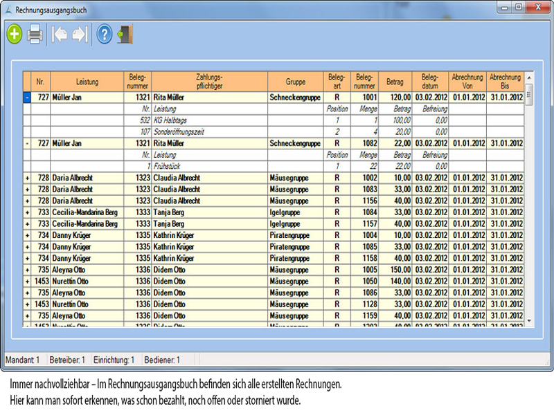 - Auswertung Abrechnungen / Rechnungsausgangsbuch